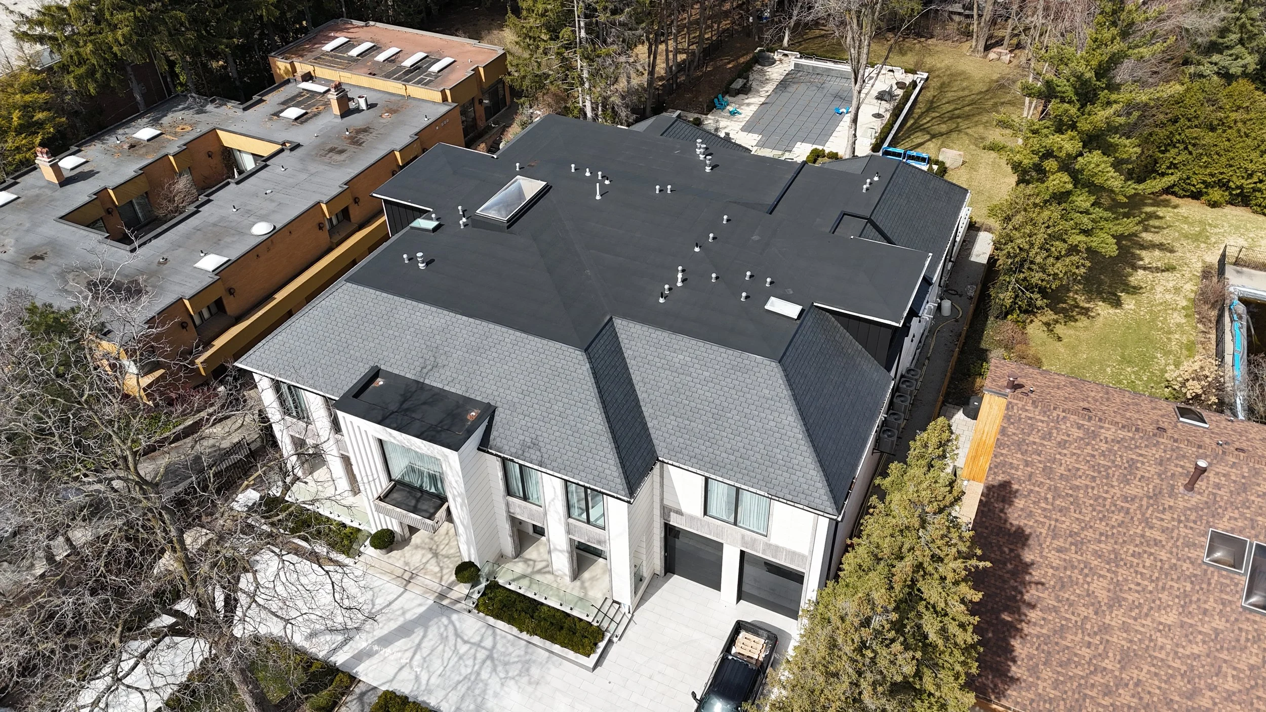 Composite slate shingles offer the timeless charm of natural slate, without the weight, fragility, or cost. Crafted from advanced materials, these shingles are engineered to withstand the harshest Canadian weather while preserving their striking appearance for decades. Whether you’re building a luxury custom home or restoring a historic property, composite slate provides the perfect blend of elegance, efficiency, and long-term value.