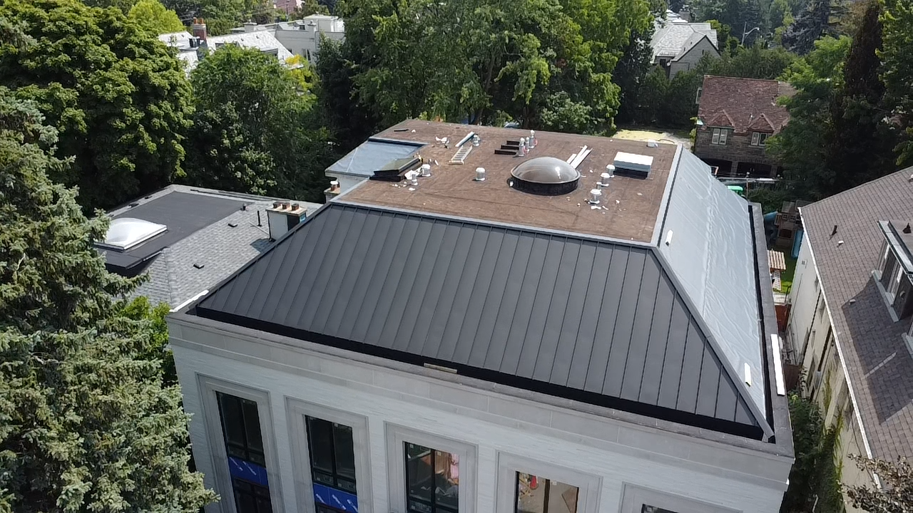 The modern powerhouse… Metal roofing is a durable and stylish choice for residential and commercial properties. It lasts over 50 years with proper maintenance and offers excellent protection against harsh weather, making it suitable for the Greater Toronto Area. Its energy-efficient properties help lower energy bills and reduce carbon footprints. Available in various styles, colours, and finishes, metal roofing enhances architectural designs while providing quality protection.